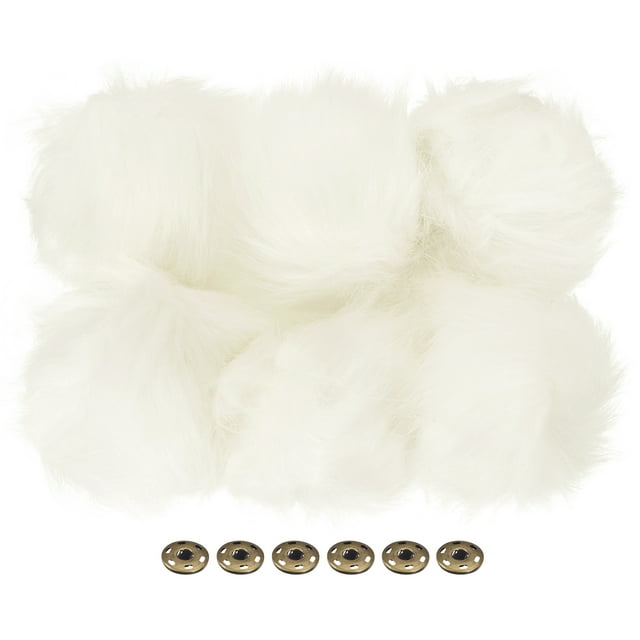 Unique Bargains Fluffy Soft Faux Fur Pom Poms for Hats with Snap Button, White 6Pack