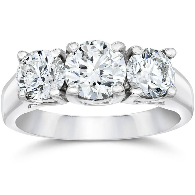 VS 1 3/8ct Three Stone Lab Grown Diamond Engagement Ring 14K White Gold