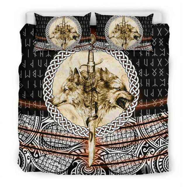 Viking Bedding Set Wolf and Vikings Tattoo 3D RLT12