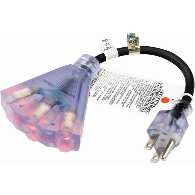 WWS-Outdoor Extension Cord with 3 Outlets 1 Foot 14 Gauge, Lighted End