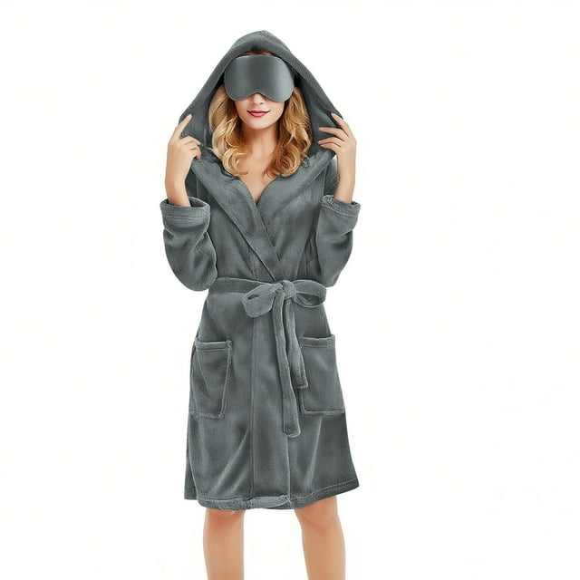 Women Robes Plush Robes For Women With Warm Fleece Hooded Bathrobe Soft Long Spa Robe With Pockets Woman Flannel Pajamas