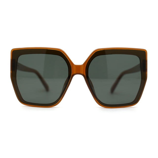Womens Oversize Square Minimal Chic Mod Inset Lens Sunglasses Brown Green