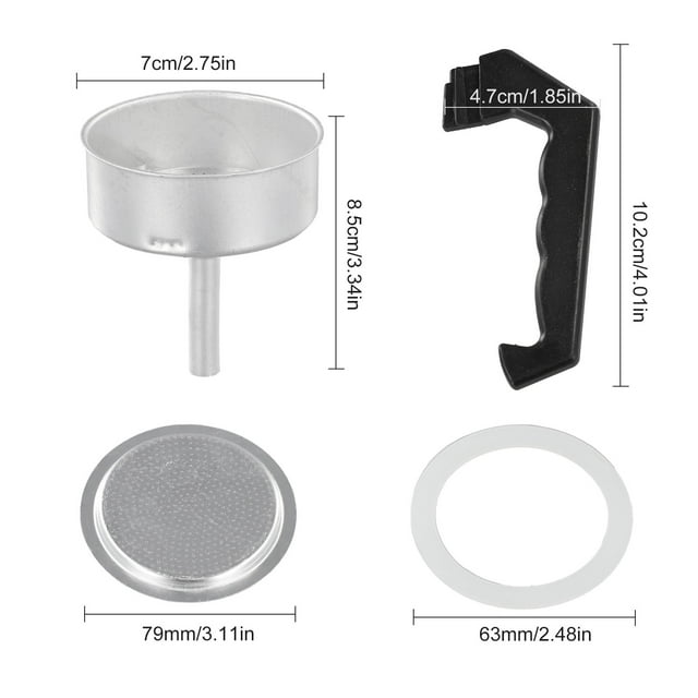 Espresso Coffee Moka Pot Replacement Parts Handle,Gasket Seal,Funnel,Filter