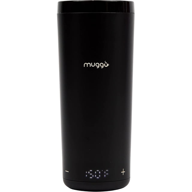 Muggo 12 oz Self-Heating Coffee Mug, Temperature Control Travel Mug, Black Portable Heated Coffee Mug with Leak-Proof Lid & 3-Hour Battery Life