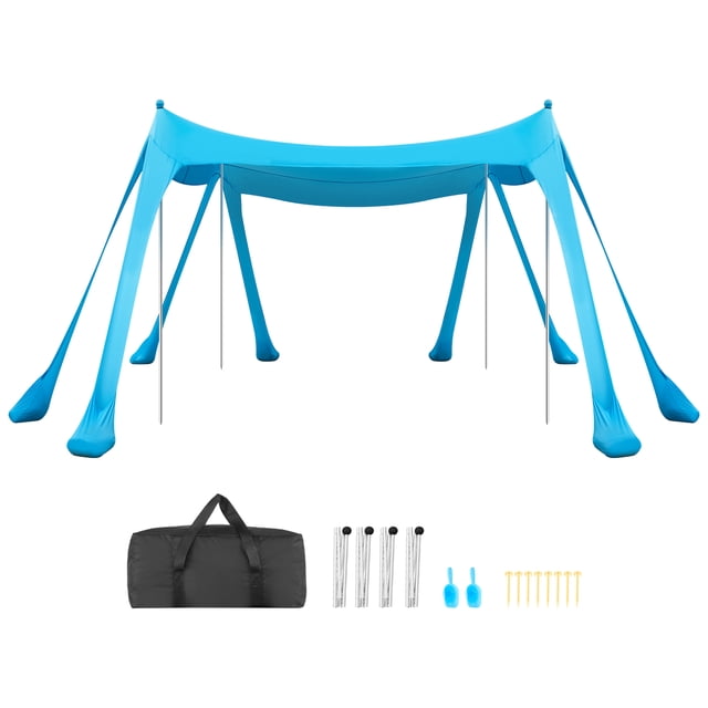 VEVOR Beach Tent Sun Shelter, UPF50+ Sun Protection, 6.6 ft Tall, 10 x 10 ft, Easy Pop Up Beach Canopy with Sandbags, Stability Poles, Sand Shovels, Portable Shade for Family, Camping, Fishing, Blue