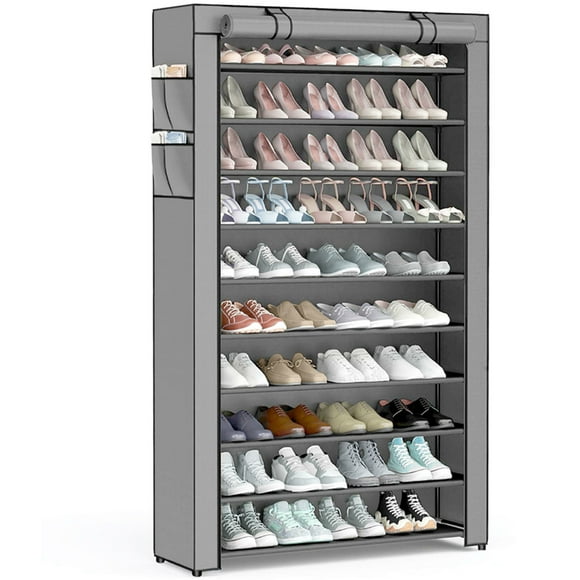 Étagère à Chaussures à 10 Niveaux avec Couvercle, Grande Capacité Étagère Haute pour Chaussures, Armoire de Rangement pour Chaussures Organisateur Pouvant Contenir 40-50 Paires de Chaussures, pour Espadrilles, Talons Hauts