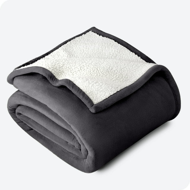 Bare Home Couverture de Lit en Sherpa Pelucheuse - Duveteuse et Douce - Réversible - Légère - Grand Lit/Grand, Gris Fer Forgé