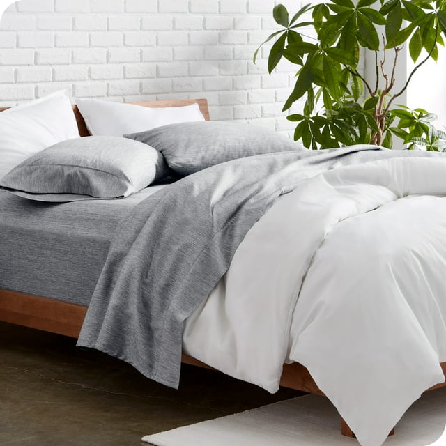 Bare Home Premium 1800 Collection Ensemble de Draps 4 Pcs, Lit Double, Charbon Chiné