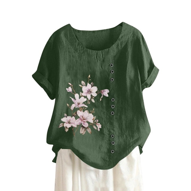 CHOK Hauts pour Femmes T-Shirts en Coton et Lin Boho Hauts Amples Blouses Gris Clair L