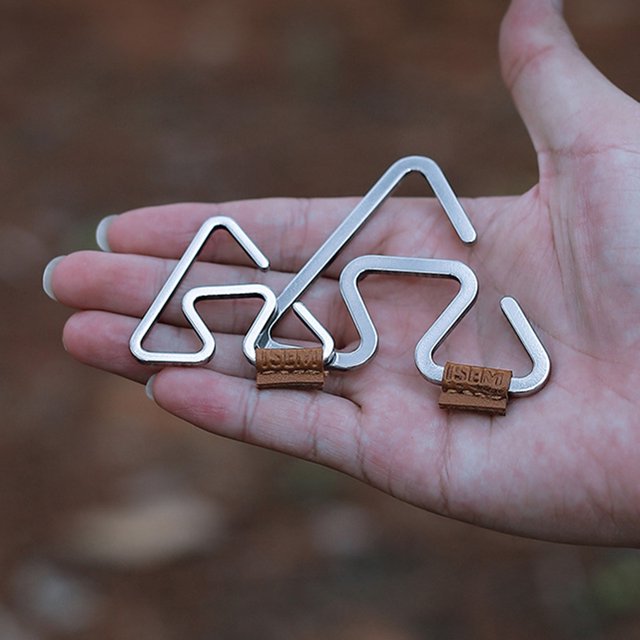 Crochet Extérieur Multifonction Haute Dureté Triangle Gain de Place Forte Capacité de Charge Articles Suspendus Acier Inoxydable Corde de Tente Boucle Accessoires de Camping Outils pour Randonnée