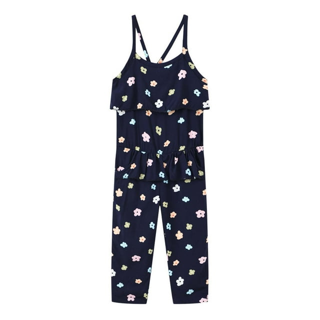 EQWLJWE Pantalons d'Été pour Enfants Filles Mode Décontractée Combinaison Imprimée Sans Manches à Bretellesip