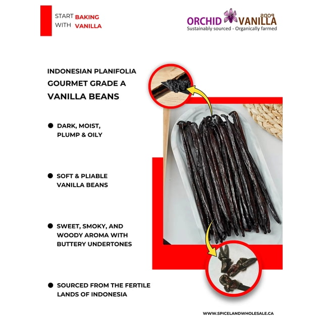 Gousses de Vanille d'Indonésie Grade A (8 oz (0.5 lb)) - pour la Pâtisserie, l'Extrait de Vanille et les Desserts - non-OGM