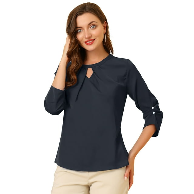 INSPIRE CHIC Haut à Enfiler Plissé à Manches 3/4 pour Femmes