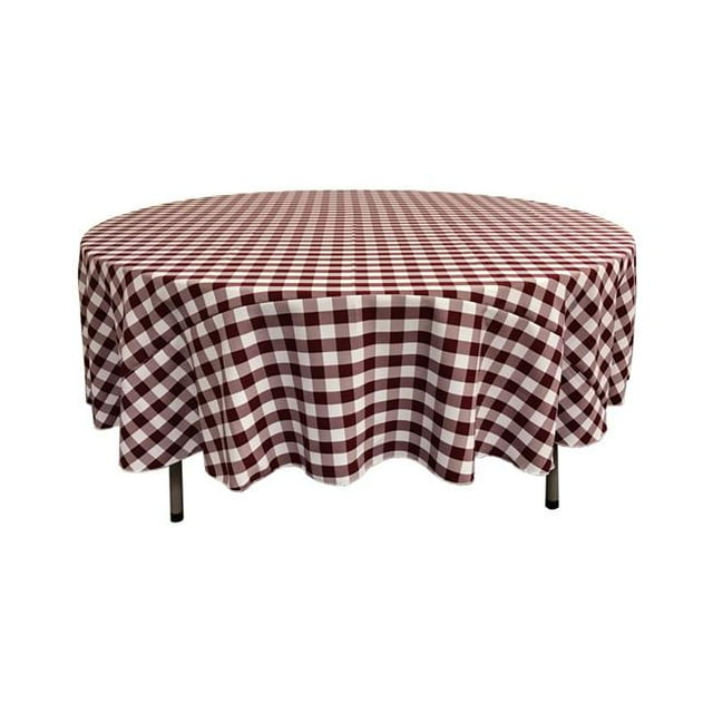 LA Linen TCcheck72R-BurgundyK17 Nappe à Carreaux en Vichy Polyester&44; Blanc & Bordeaux - 72 Po Ronde