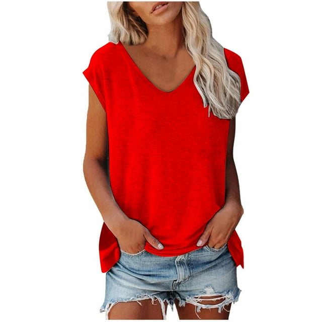 LUOGENLI T-shirts pour Femmes T-shirts d'Été Mode Décontractée Col en V Col Bas Manches Ultra Courtes Couleur Unie Imprimé T-Shirt Ample Haut 4TG T-shirts Graphiques Saint-Valentin Rouge TTGipipipipipipipipipipipipipipipipipipipipipipipipipipipipipipipipipipipipipipipipipipipipipipipipipipip