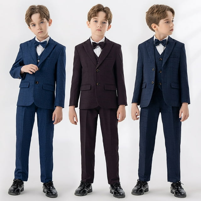 MKOSPLRT Complets pour Garçons Complets de Smoking Formels pour Garçon Fleur Tenues de Fête de Mariage Complet pour Enfants Veste Habillée Chemise Gilet Pantalon Ensemble Cravate