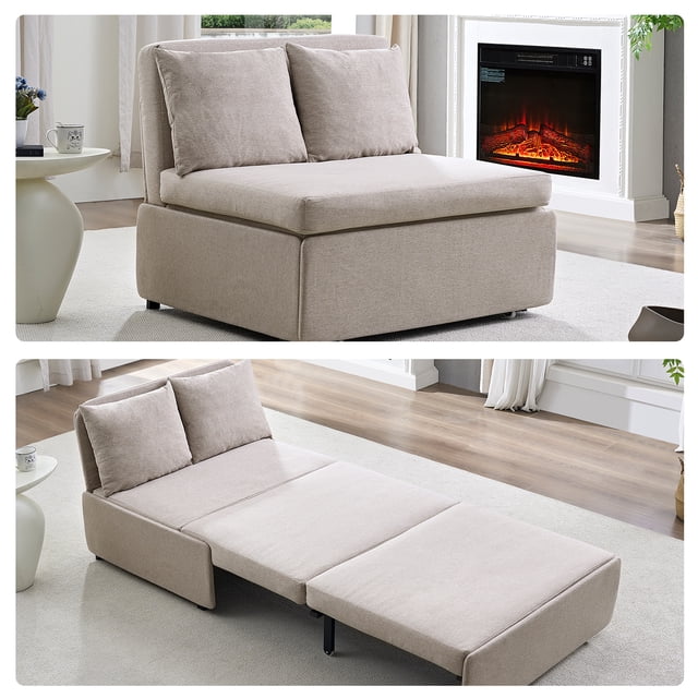 Mjkone Canapé-Lit Convertible Format Simple, Canapé-Lit Moderne en Lin Extensible, Canapé-Lit Réversible avec Coussins et Oreillers Décoratifs pour Petit Espace/appartement/salon/bureau/studio (Beige)ipipipip