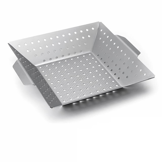 Panier Carré pour Gril avec Poignée Résistante à la Chaleur, Panier BBQ de 12 Pouces en Acier Inoxydable avec Revêtement Antiadhésif, Poêle de Barbecue en Acier Inoxydable