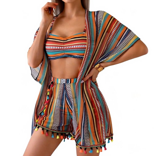 RXMEKW Ensemble de Maillot de Bain avec Protection Solaire et Franges pour Femmes 4 Pcs Polyester Décontracté Longueur Régulièreipipipipipipipipipipipipipipipipipipipipipipipipip