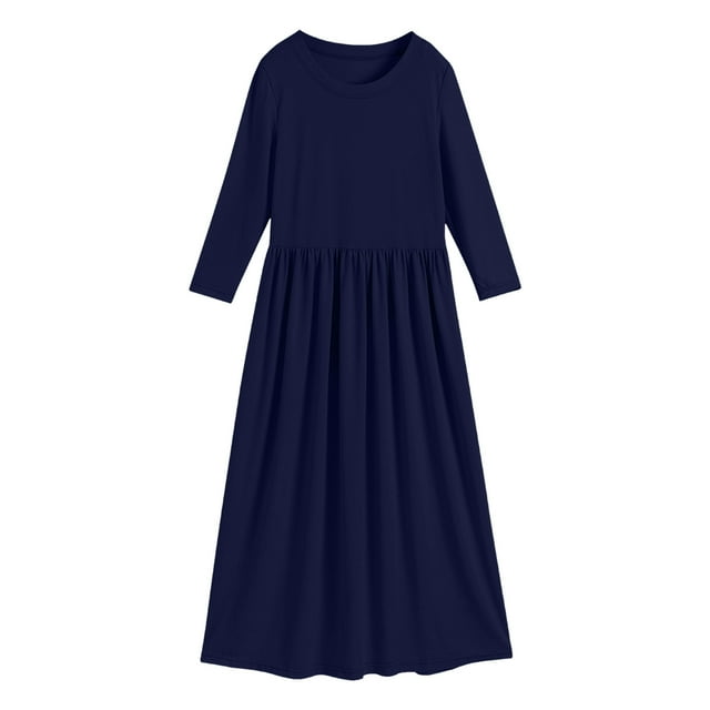 2025 Robe à Volants à Manches Longues pour Tout-Petit Col Rond Solide Ample Taille P Robe 8 Robe Décontractée Tenue Quotidienne Longue Robe Bleue pour S Maxi Princesseipipipipipipipipipipipipipipipipipipipipipipipipipipip