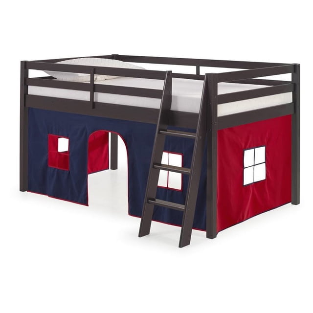 Roxy Lit Mezzanine Junior en Bois avec Espresso avec Fond Bleu et Rouge