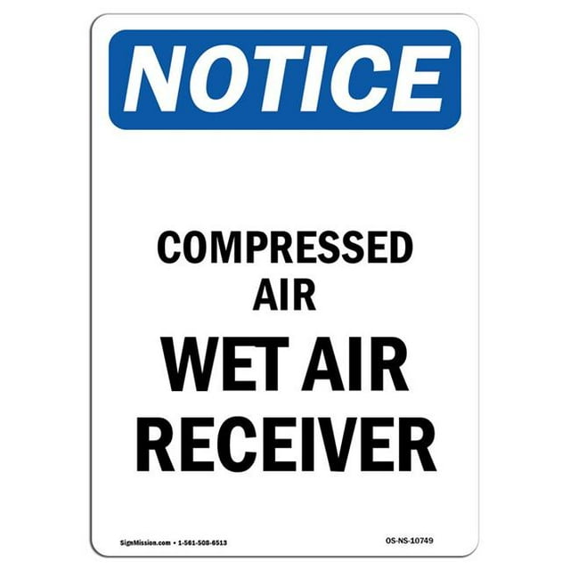 SignMission OS-NS-A-1824-V-10749 18 x 24 Po Panneau d'Affichage OSHA - Récepteur d'Air Humide à Air Comprimé