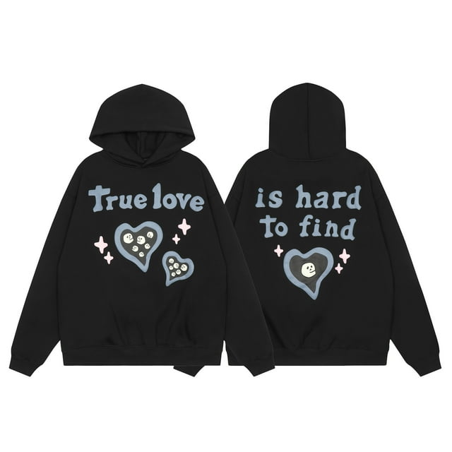 Sweat à Capuche en Velours Décontracté Imprimé Lettres Planète Cassée-24723 Noir-S
