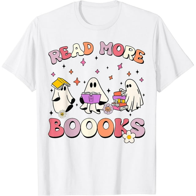 T-Shirt Rétro Groovy Read More Books Ghost Boo ghoul Drôle Halloween - Noir - L