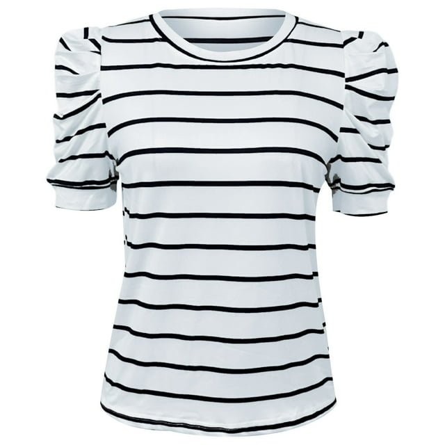 T-Shirts à Col Rond pour Femmes, Hauts d'Été Décontractés avec Détails en Dentelle Rayée pour Usage Quotidien