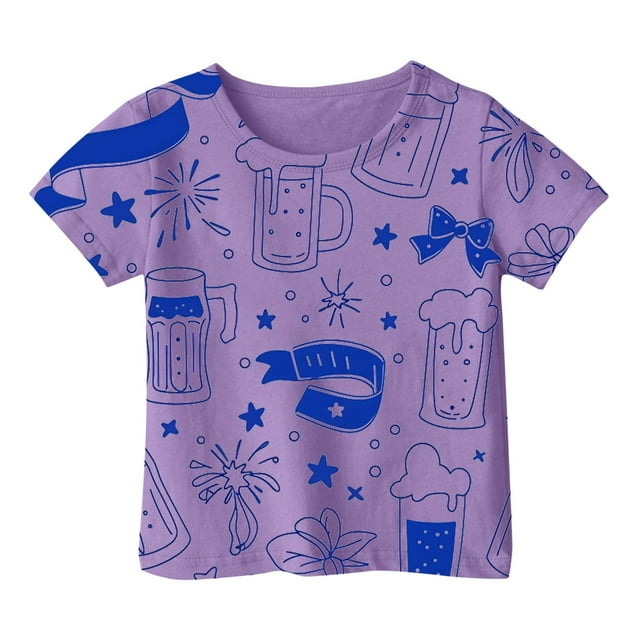 T-Shirts d'Été pour Filles, Manches Courtes Imprimées Graphiques Décontractées, Col Rond à Volants, Taille 1-2Tip