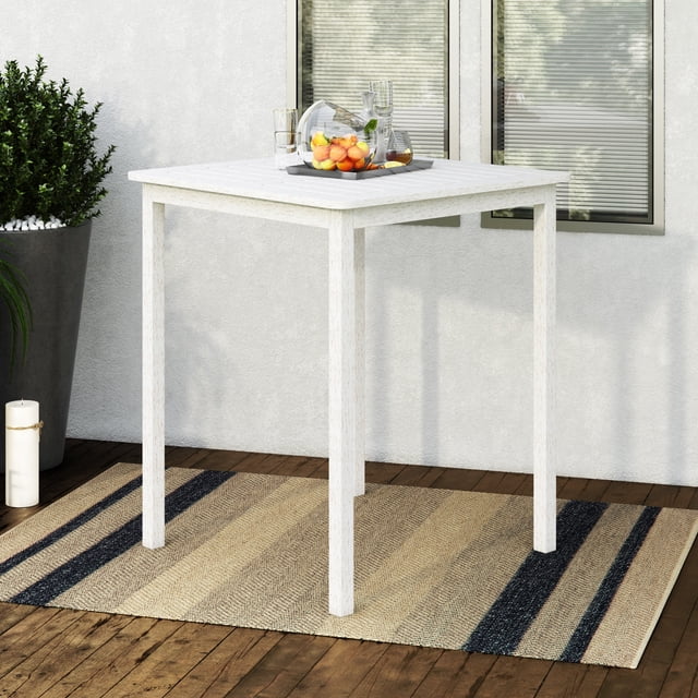 Table de bar d'extérieur CorLiving Miramar en bois massif, hauteur bar, plateau à lattes et trou pour parasol, blancheipipip