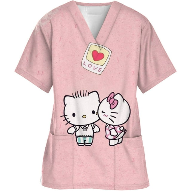 Uniforme d'Infirmière pour Femmes à Manches Courtes Hello Kitty Uniforme de Travail Blouse à Poche Hauts de Sarrau Uniformes Médicaux d'Infirmière Accessoiresip