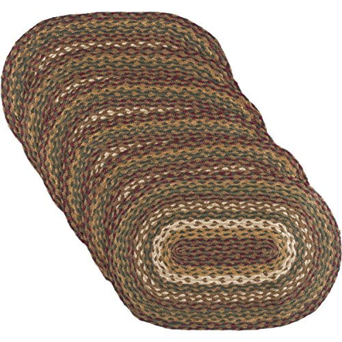 VHC Marques Rustique Table Cuisine Cabine de Thé en Jute Texturé Rayé Décor de Table Ovale, Set de Sets de Table 12x18, Vert