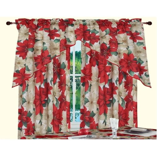 Violet Linen Ensemble de Rideaux de Cuisine Décoratifs de Noël Imprimé Poinsettia Design Floral 3 Pcs