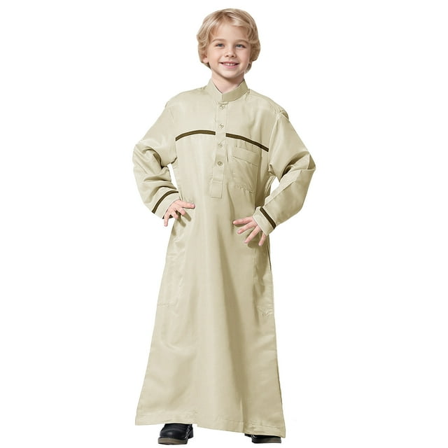 XDZJLR Combinaison Garçon Tout-Petit Arabe Musulman Thobe Manches Longues Kaftan Crew National Adolescent Robe Brodée Manches Longues Ensemble Barboteuse Beige 11-12 Ansipipipipipipipipipipipipipipipipipipipipipipipipip