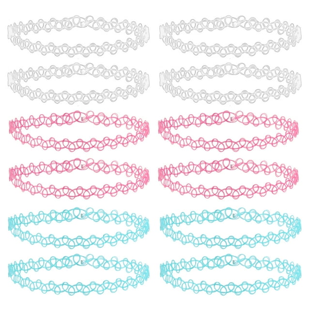 ZS 6/12 Pcs Collier Ras du Cou Vintage pour Femmes Filles Chaîne Élastique Collier Coloré Punk Gothique Extensible Collier Dentelle FGS
