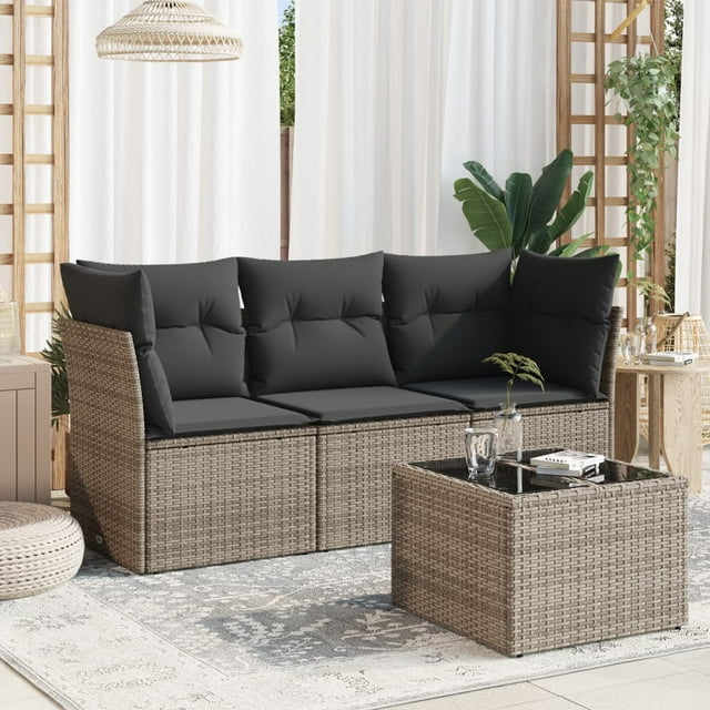 vidaXL Ensemble de Canapé de Jardin 4 Pcs avec Coussins en Poly Rotin Gris